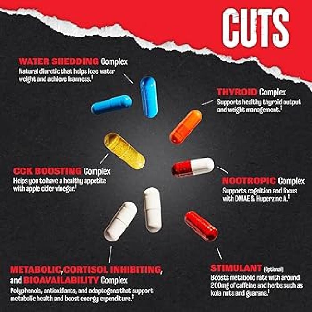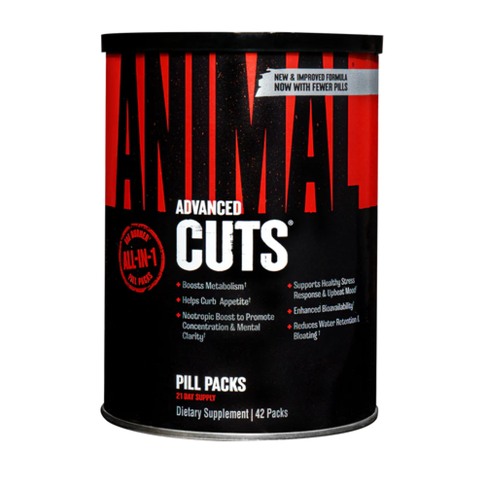 Animal Cuts هو مكمل حارق للدهون حائز على جوائز، مصمم لمساعدتك في تحقيق أهدافك في التخسيس. يحتوي هذا المكمل الشامل على مكونات قوية تعزز قدرة الجسم الطبيعية على حرق الدهون المخزنة مع تعزيز كتلة العضلات الخالية من الدهون. تحتوي كل عبوة على مزيج من المركبات الحرارية، الأيضية، المعرفية، والمدرة للبول لدعم فقدان الدهون، وتعزيز التركيز، وتقليل احتباس الماء.